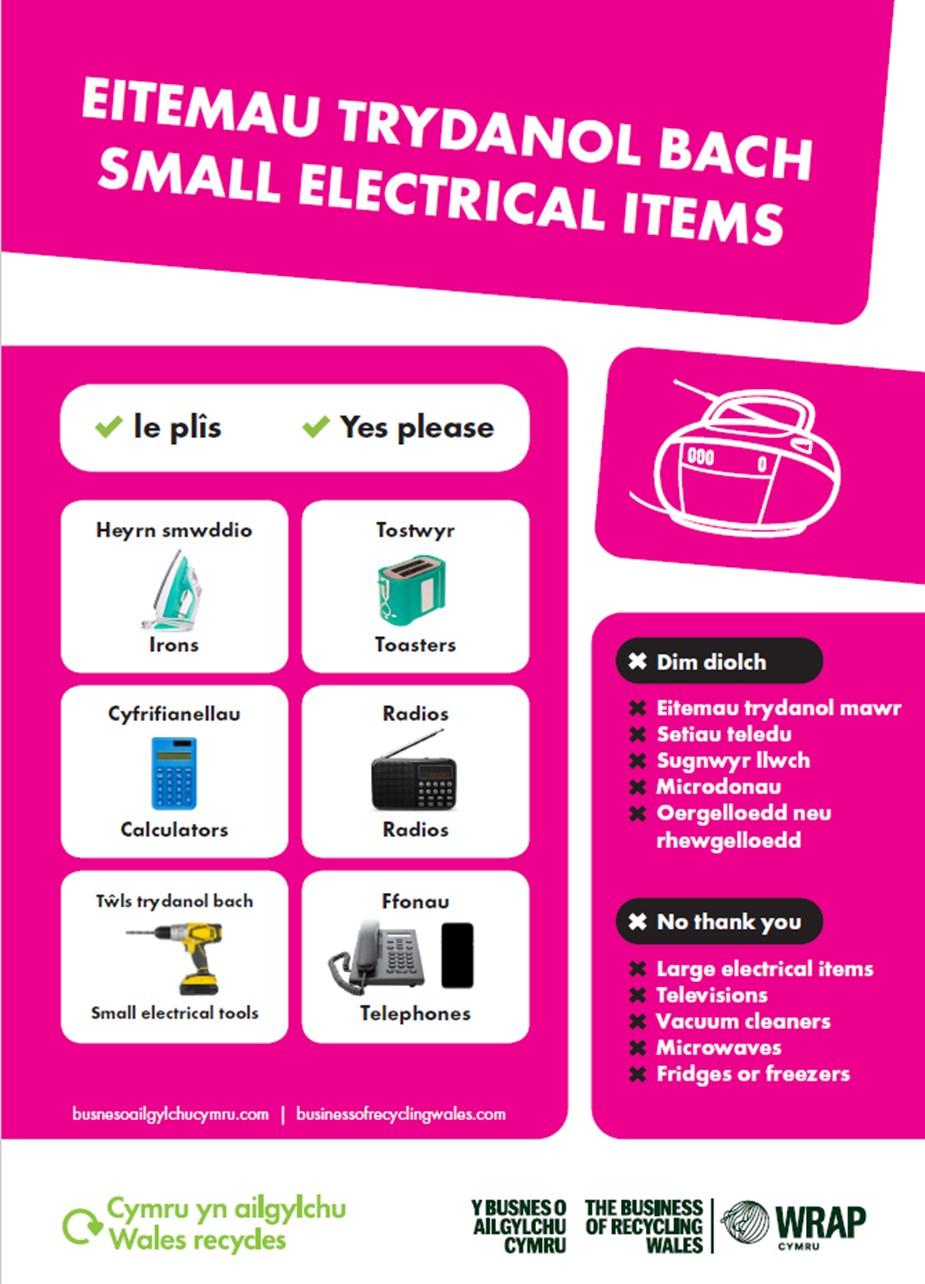 Posteri ac arwyddion – i’w lawrlwytho am ddim gan gynnwys poster ar gyfer sWEEE